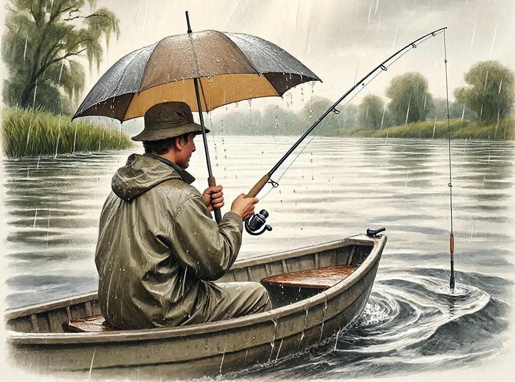 Многие новички считают, что дождь — это конец рыбалке. Но опытные рыболовы знают: иногда это лучшее время для выхода на воду.