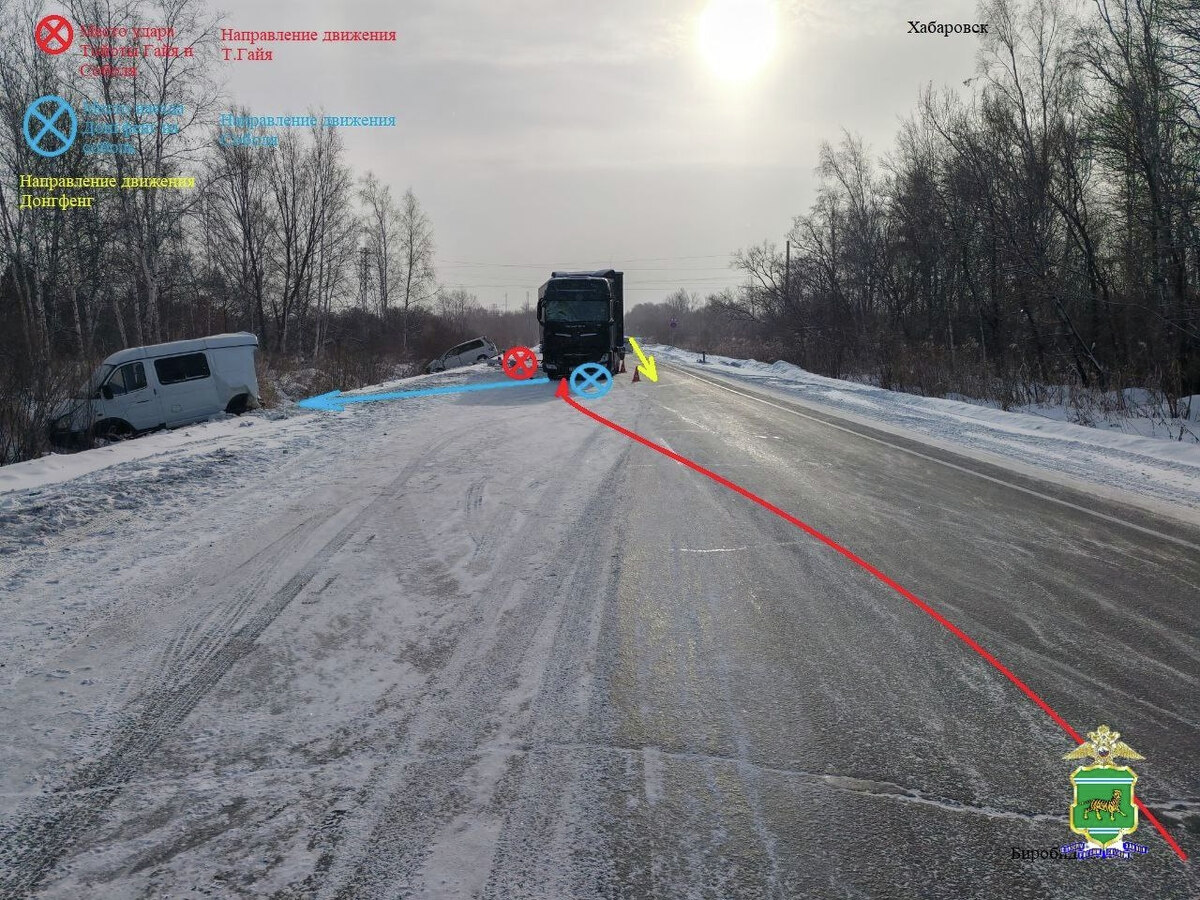 ДТП произошло на ФАД «Чита -Хабаровск» в районе 2092 км 90 м, водитель автомобиля Toyota Gaia при движении, не справился с управлением, выехал на встречную полосу и столкнулся с автомобилем «Газ Соболь». После удара иномарка съехала в придорожный кювет, а «ГАЗ» остался на проезжей части. В этот момент движущийся сзади автомобиль Dongfeng совершил наезд на «ГАЗ Соболь». После удара микроавтобус также съехал в придорожный кювет. В результате ДТП водитель и два пассажира автомобиля «ГАЗ Соболь», а также пассажир авто Toyota Gaia получили телесные повреждения различной степени тяжести. Напомним, что ранее два человека пострадали в массовом ДТП в Биробиджане. На улице Пионерской столкнулись четыре автомобиля. Водитель и пассажир одной из машин получили травмы.