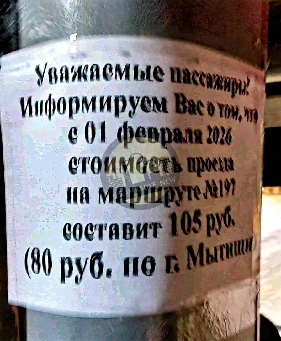 В Мытищах прокатиться до метро в набитой маршрутке с 1 февраля будет стоить 105 рублей, сообщает подписчица.