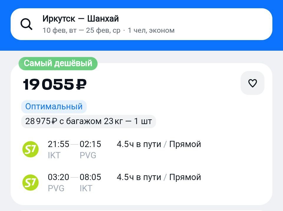 ? По неподтвержденной информации: с лета. А пока ловите Шанхай из Иркутска на февраль. https://aviasales.tpm.lv/wzIlGHei Из Новосибирска в Шанхай стартуют прямые рейсы с конца марта. #PGV @KJA