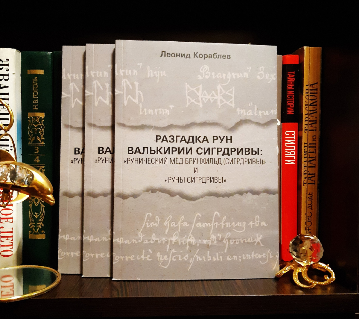 Книга Леонида Кораблева "Разгадка рун Валькирии Сигрдривы" Объем книги 132 страницы. Формат А5, переплет мягкий Цена 1500 руб Доставка почтой 200 руб Для заказа обращайтесь по адресу: albrunster@gmail.com или в личку Краткая аннотация: Книга посвящена разгадке настоящих волшебных и загадочных рун из древней скандинавской поэмы «Речи Сигрдривы». Их исследованием занимались шведские ученые и специалисты Третьего Рейха, а так же исландские профессора. Связаны ли Гамманруны с сексом? Банд-руны, связанные руны, бинде-руны, связанные с поэмой «Речи Сигрдривы». Аналогичные руны обнаружены на рунических палочках в Норвегии. Магические руны прибоя из Рунологии Йоуна из Грюнна-вика. Леонид Кораблев дает ключ к их расшифровке в этом издании. Данный материал необходим для повышения квалификации в изучении и использовании рун. ----------— В книге, вопреки устоявшемуся мнению невежд, Леонидом Кораблевым произведена попытка расшифровать руническую часть поэм «Речи валькирии Сигрдривы» («Sigrdrífumál»