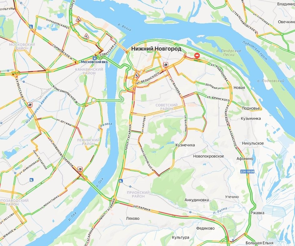 Гигантские пробки сковали Нижний Новгород утром 30 января. Ситуация по городу оценивается в семь баллов. Об этом свидетельствуют данные сервиса «Яндекс. Пробки». Наибольшие затруднения наблюдаются на улицах Белинского, Новикова-Прибоя, Надежды Сусловой, Керченской, Мурашкинской, Коминтерна, Федосеенко, Казанском, Московском, Анкудиновском и Сормовском шоссе. Также серьезные заторы образовались на проспекте Гагарина, улицах Ларина, Монастырка, Генкиной, Родионова, Маслякова, Большой Покровской, а также Удмуртской, где случилось сразу два ДТП. Напомним, накануне вечером Нижний Новгород встал в десятибалльных пробках. Самые интересные и срочные новости читайте в Telegram-канале «В городе N»