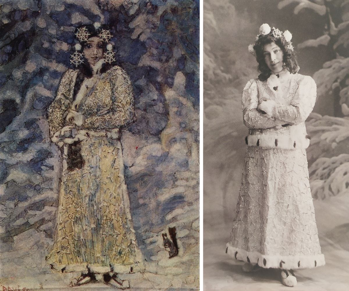 "Я сшила себе костюм по твоему рисунку, вышло красиво: на серебряном флёре вышито белым стеклярусом и горностаем опушен, головного убора ещё
