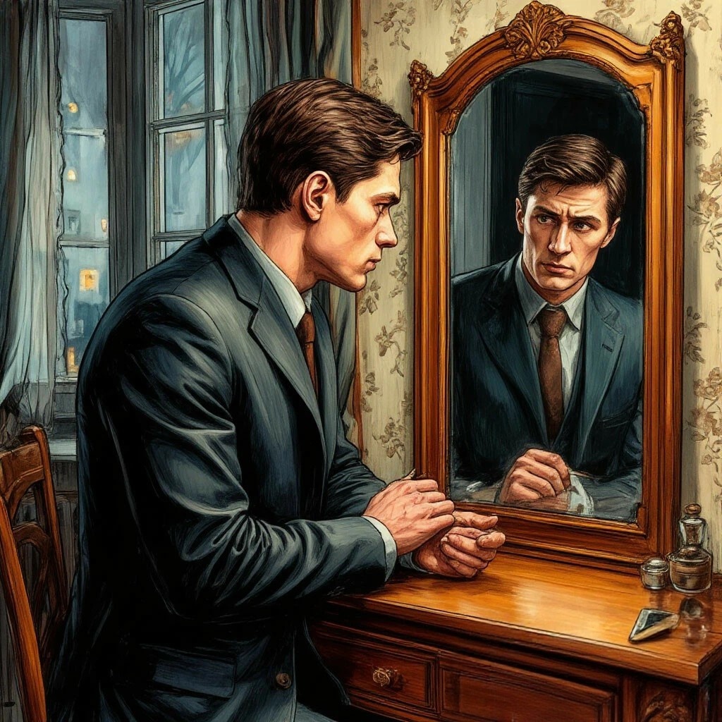 Волков вернулся домой в полночь. В квартире было тихо, но в воздухе витал металлический запах, как в доме Левандовского. Он подошёл к зеркалу.