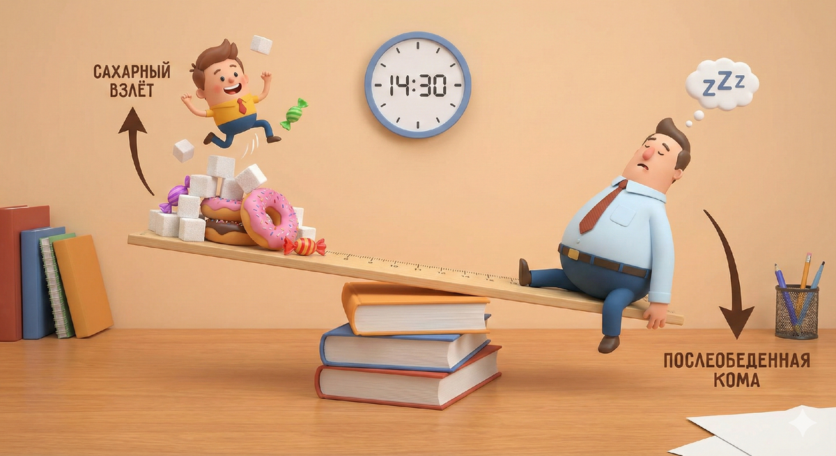 И вот тут вас накрывает. Мозг, который только что купался в глюкозе, вдруг обнаруживает, что «топливо кончилось». Он посылает сигнал SOS: «Мы голодаем! Мы устали! Срочно спать (или съесть еще шоколадку)!».