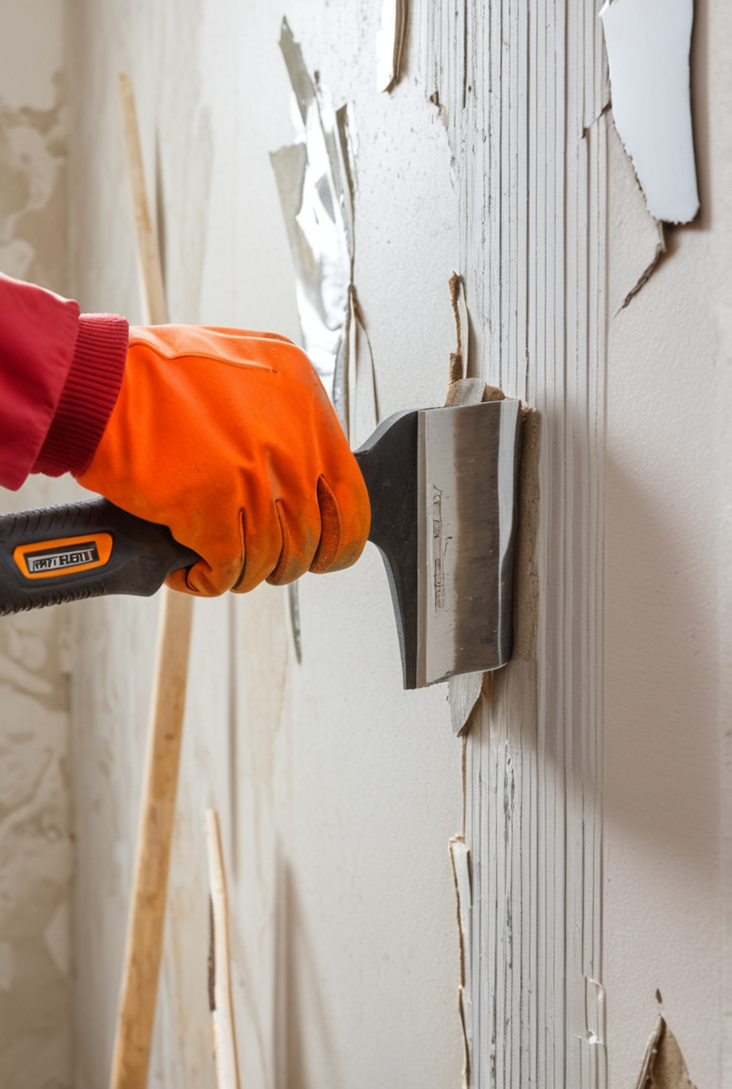 - Очистка от клея: После удаления обоев или плитки помогает полностью избавиться от остатков клеящего состава, делая стену гладкой и ровной.