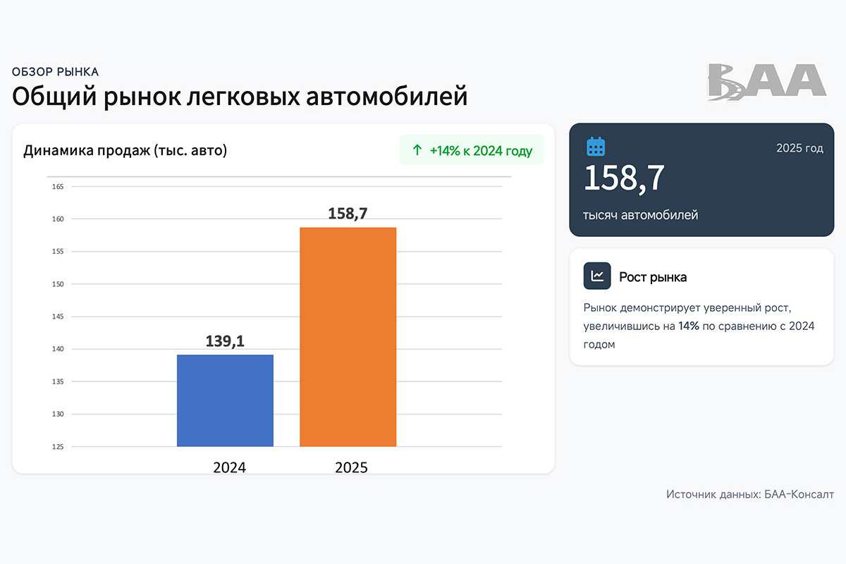 28 января на итоговой пресс-конференции Автомобильной ассоциации «БАА» было озвучено, что общий объем рынка легковых автомобилей в Беларуси составил 158,7 тысяч единиц, что на 14% больше, чем в 2024 году. Как пояснил директор УП «БАА-Консалт» Дмитрий Ярота, данные сформированы по всем автомобилям, поставленным на учет в Республике Беларусь, независимо от канала ввоза – юридические лица, физические лица или локальное производство.