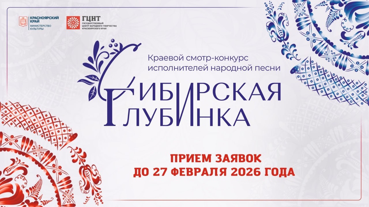! С целью сохранения и укрепления традиционных российских духовно-нравственных ценностей в области культуры, развития и популяризации народно-певческого искусства в Красноярском крае Государственный центр народного творчества Красноярского края проводит краевой смотр-конкурс исполнителей народной песни «Сибирская глубинка». Конкурс проводится в г. Красноярске на базе Дворца Труда и Согласия им. А.Н. Кузнецова (пр. Металлургов, 22) с 13-15 марта 2026 года в два этапа в очном формате. К участию в конкурсе приглашаются взрослые профессиональные и любительские хоровые коллективы, вокальные ансамбли, исполняющие народные песни и авторские песни в народном стиле, независимо от ведомственной принадлежности Подробности на сайте ГЦНТ. #КрайВысокойКультуры #культураКрасноярья