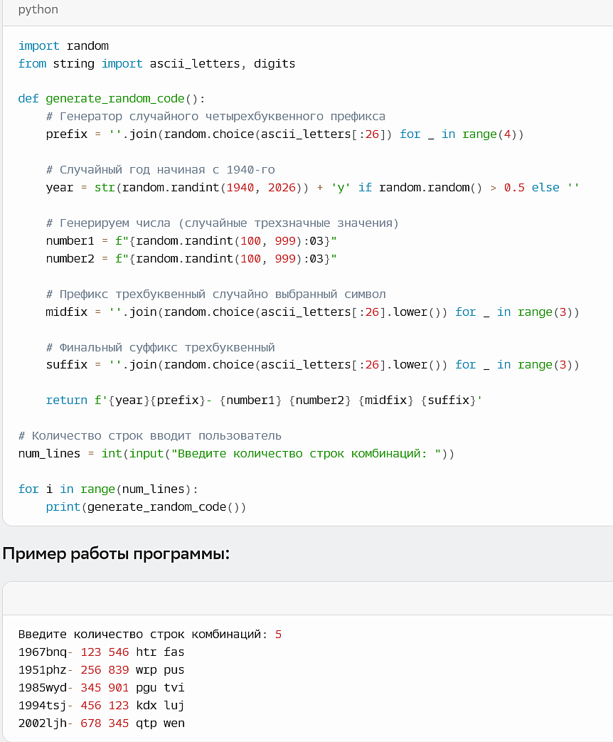 программа вывода строк кодов ии