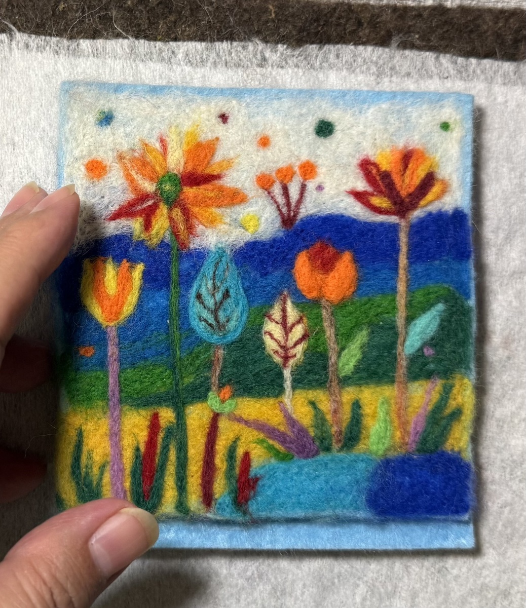 4. Пробуйте комбинировать. Отличный эффект дает сочетание сухого валяния с мокрым (для создания плоского фона-неба или луга) или с вышивкой.