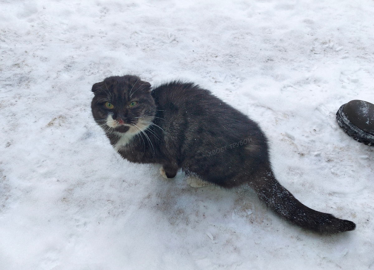 Мы все возмущаемся, негодуем, как так, животных выкидывают в лесах, полях, без шансов на выживание, ведь там их абсолютно никто не найдет, не поможет. А эта кошечка была выброшена в городе, в частном секторе. Думаете, ей это каким-то образом помогло? Два месяца она ходила от дома к дому, ни у кого угла не нашлось для малышки. Даже кормить ее не хотели, вдруг останется. А ей и идти то было некуда! Она и осталась там, где были другие кошки. Сытые, кругленькие, в дом их постоянно пускают. А эту, чужую, гонят подальше от порога, а она все просилась и просилась в дом, на ручки, потом поесть хотя бы, уже и не до ручек и не до дома было ей... Нам написал Александр и попросил приютить эту бедолагу. Он приехал в гости к отцу из другого города, увидел ее в общем дворе на несколько домов. Прислал фото, на котором малышка лежала свернувшись на старом диване, а хвостик ощетинился от холода. Тогда мы еще не знали, что диван этот на улице стоит, думали в коридоре где-то... Но нет, он стоял на веранд