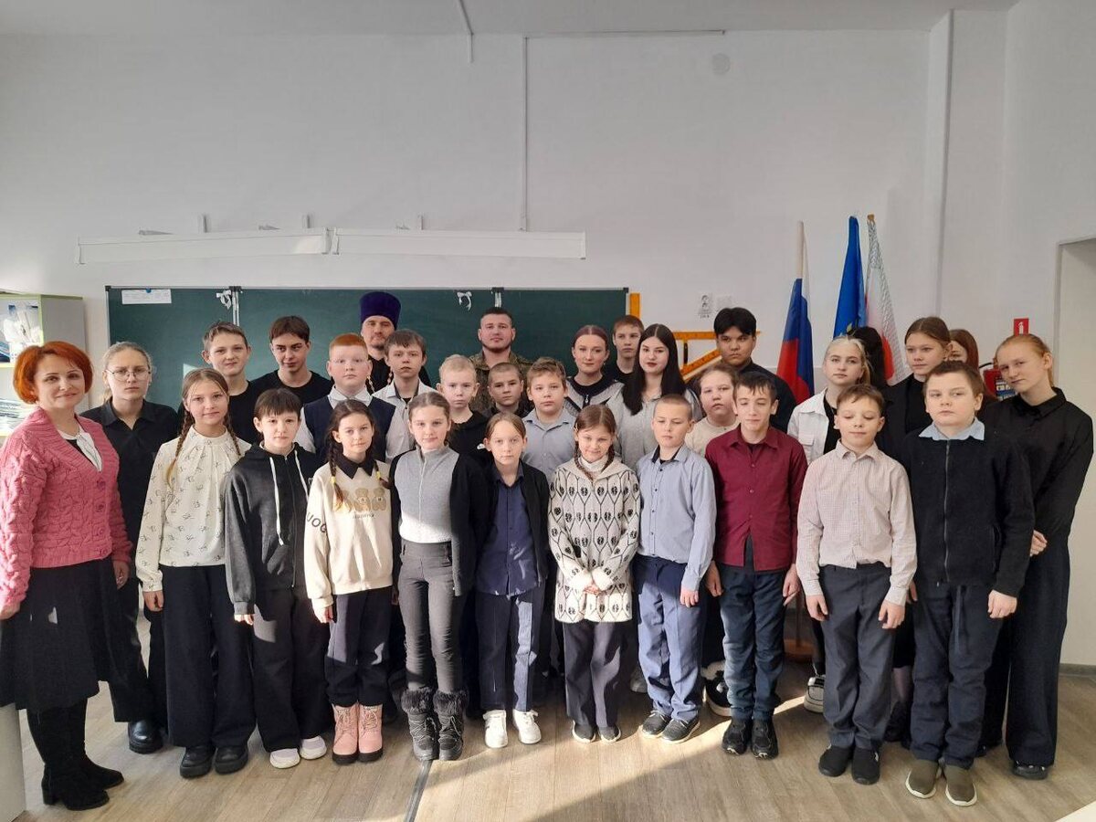 28 января в стенах Решотинской основной школы произошла удивительная встреча. По случайному, но такому символичному совпадению здесь встретились учитель школы, участник СВО, приехавший в краткосрочный отпуск и заглянувший к своим ученикам перед возвращением на фронт –Иван Николаевич Пронович и настоятель храма Покрова Пресвятой Богородицы из Нижней Поймы – отец Сергий Смутин, прибывший в школу по делам. Эта встреча стала для ребят настоящим откровением. Иван Николаевич рассказал о буднях военных, о трудностях и радостях, о важности знаний, получаемых в школе, которые могут спасти жизнь на передовой. Он поделился историей о военном священнике, который окормляет бойцов прямо в зоне боевых действий — в блиндаже, где звучат молитвы и горит лампада. Школьники засыпали учителя-воина вопросами: как солдаты проводят свободное время, как справляются со страхом, скучают ли по дому. И на каждый вопрос получили честный и проникновенный ответ. В завершение встречи ребята и педагоги пожелал