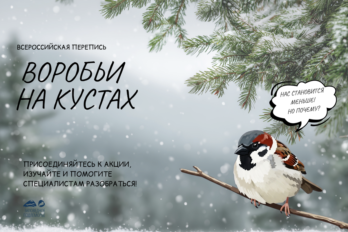 Кажется, что изменить что-то в большом мире экологии сложно? А вот и нет. Иногда помощь начинается… с обычной прогулки! С 7 по 15 февраля 2026 года по всей стране пройдёт Всероссийская перепись воробьёв «Воробьи на кустах», и принять участие в ней может каждый. Домовые и полевые воробьи – привычные соседи, но их становится всё меньше. Чтобы понять, что происходит с популяциями и как им помочь, учёным нужны реальные данные из всех регионов России. И именно вы можете их собрать. • посчитайте воробьёв во время прогулки; • сделайте фото встреченных птиц; • сохраните координаты мест; • внесите все данные на сайт. Даже такой простой шаг – уже вклад в большое дело. А ещё это отличный повод выйти на свежий воздух, понаблюдать за природой и почувствовать себя частью важного всероссийского проекта. Будьте активны, поддержите свой регион! Самые инициативные участники из регионов-лидеров смогут получить сувениры с символикой акции 🎁 Подробная инструкция есть на официальном сайте акции. Присоединя