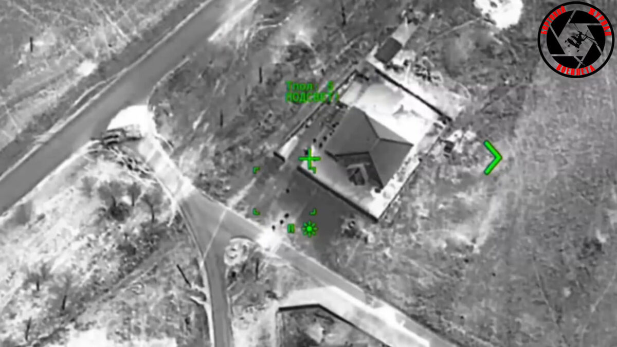 Работа российского разведывательно-ударного БпЛА «Форпост-РУ» корректируемыми боеприпасами с лазерной ГСН КАБ-20Л по ПВД противника