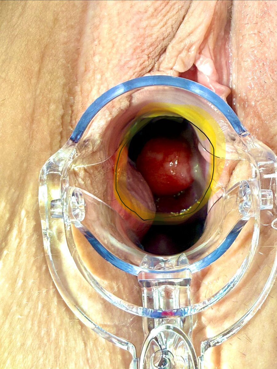 Миома шейки матки ! И такое бывает ! Миоматозный узел располагается в шейке матке .На фото его чётко видно . К сожалению данную пациентку сразу взять на операцию не смогла - гемоглобин -85г/л, это противопоказание для операции, уберем узел через 1 мес , когда пациентка восстановит показатели крови . Со слов , вырос узел в 2023г, узнала о миоме когда была беременна, роды прошли путём кесарева сечения, после родов прошло 8 мес , и вот такое состояние узла сейчас 🎯 Берегите себя, мои дорогие и будьте здоровы , не забывайте планово раз в год ходить к гинекологу🙏