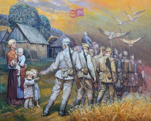 Он фундамент укрепляет щебнем памяти в цемент. Повреждённый держит корень грубый хват мужской руки, Освещая путь народный светом сварочной дуги. По морям не ездил жарким, не терзал он живота, Путь свой ищет понемногу под распятием Христа, Спотыкаясь по дороге, он себя терял во тьме, Был хромым и был убогим в своей внутренней войне. Разгружал вагоны, тонны нёс надежды на плечах, Был расстрелянным в упор он по доносу стукача. Земли севера тревожил, нам из стали строил путь, Он же позже бил на коже профиль Сталина на грудь. С губ его сошли рассказы о потопе и царях, Как коней седлали лихо, как ходили на ладьях, Крах империи великой, чёрно-жёлто-белый как Флаг краснел, чтобы взобраться на пылающий Рейхстаг. Был на курском он, в Херсоне, за Донбасс держал ответ, Был на тех же направлениях через восемьдесят лет. Видел ту, что на обратной стороне медали боль, Груб порой и неопрятен, но душа его - Ассоль. Поклонился до земли он, сняв берет, спросил ребят, Имена чьи полукругом обелиска вст
