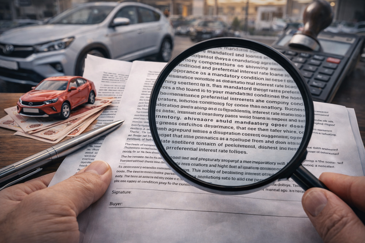 Покупка автомобиля в кредит сегодня редко заканчивается на цене машины и процентной ставке. Основные деньги теряются не в рекламе и не в витрине, а в договоре, который подписывают в последний момент.