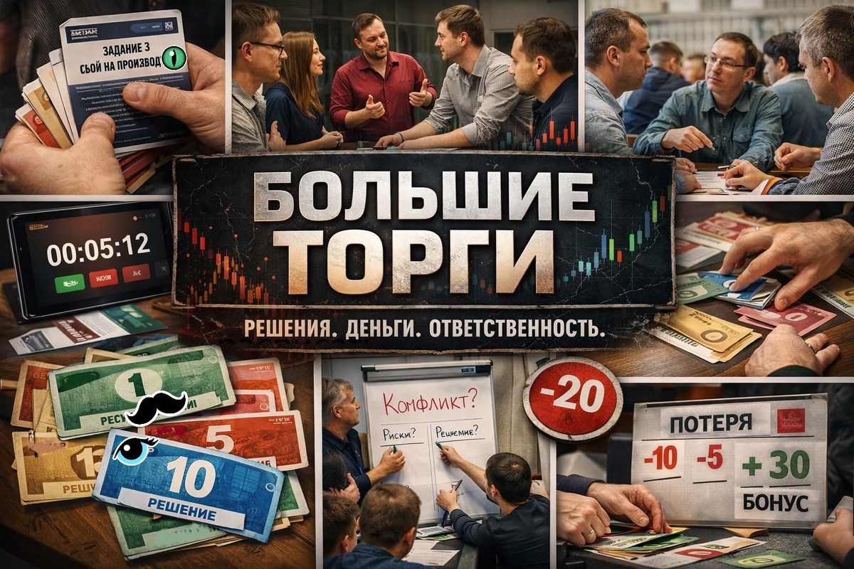 Это не тренинг и не тимбилдинг «для галочки». Это жёсткая, но безопасная игра про то, как команды на самом деле принимают решения. Про то, как: 📌каждый умный, 📌каждый занят своим, 📌каждый «не при делах» - а результат почему-то ниже, чем мог бы быть. В игре: Особенно хорошо заходит техническим командам, инженерам, ИТР, специалистам, которые: После игры команды сами говорят: «Так мы же ровно так и работаем…» Если хотите: ✅встряхнуть команду, ✅наладить взаимодействие между отделами, ✅показать цену недоговорённостей без моралей и лекций - «БОЛЬШИЕ ТОРГИ» - отличный формат. Пишите в личные сообщения в Телеграмм @Gulnara_Ildarovna - расскажу, как игру можно провести именно в вашей команде.