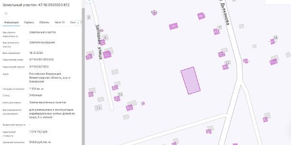 Название: Площадью 1120 кв.м., с кадастровым номером 47:16:0501003:612