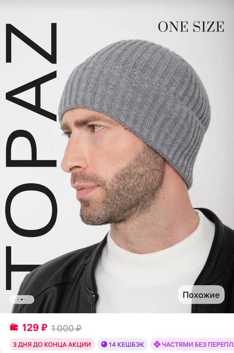😀😀😀Topaz Шапка зимняя вязаная бини с отворотом