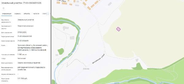 Название: продажа земельного участка из земель населенных пунктов с кадастровым номером 71:05:060401:535, площадь 1000 кв