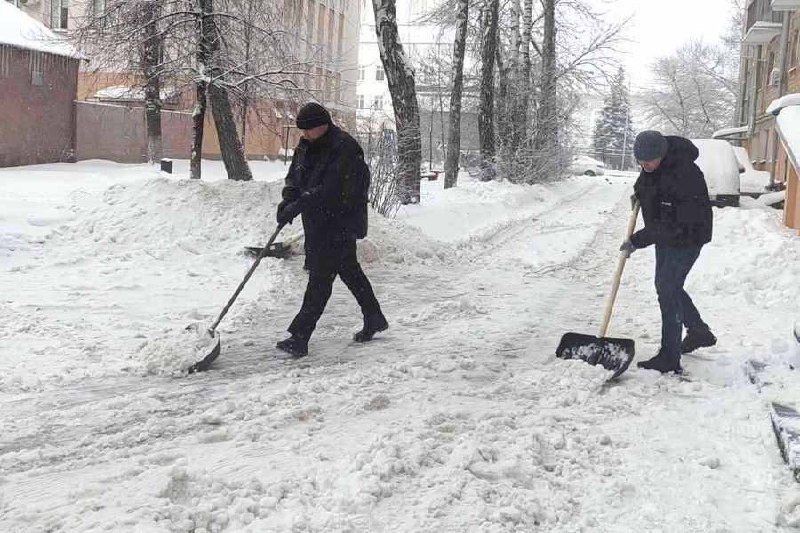 В районах города продолжается интенсивная уборка снега, к которой подключаются всё новые силы.