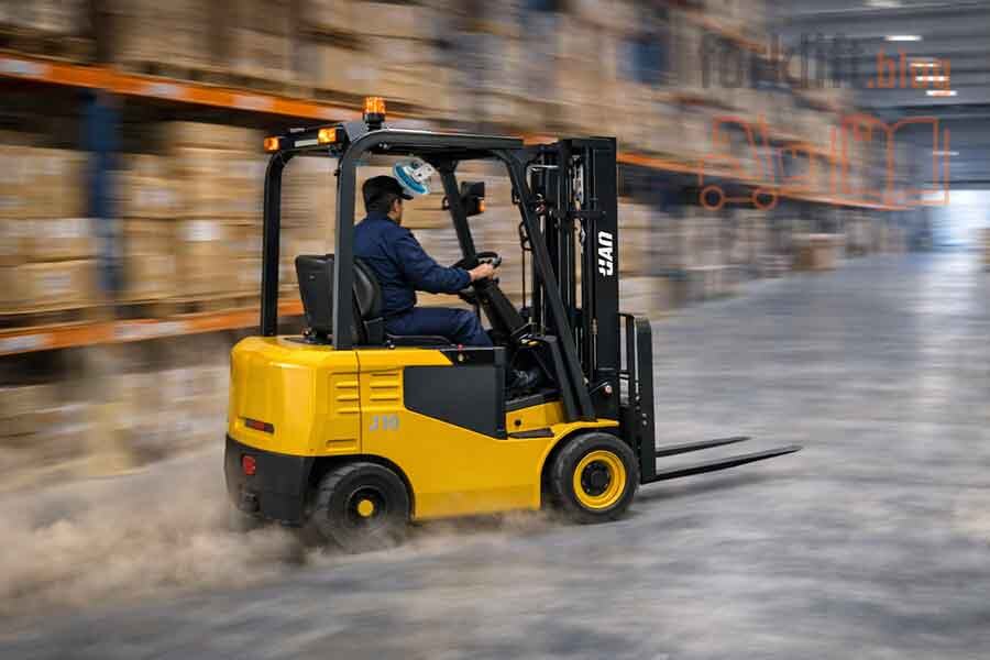 Скорость вилочного погрузчика внутри склада всегда должна быть ниже, чем на открытых площадках. Причина проста: в помещении больше пересечений маршрутов, узких проходов, ограниченной видимости и пешеходных зон. Именно поэтому скорость погрузчика на складе напрямую влияет на безопасность, сохранность грузов и эффективность работы. На практике большинство компаний вводят скоростной режим для складской техники в диапазоне 5–8 км/ч. Это оптимальная скорость, при которой водитель сохраняет контроль над машиной и успевает вовремя остановиться при неожиданном появлении человека или препятствия. Единого закона, который устанавливает точную цифру, нет, но есть общие требования охраны труда и промышленной безопасности. Обычно скорость движения погрузчика внутри помещения определяется внутренними регламентами предприятия и зависит от условий склада. Чаще всего применяются такие ориентиры: Важно понимать: даже если вилочный погрузчик технически способен ехать быстрее, внутри склада это нецелесообр