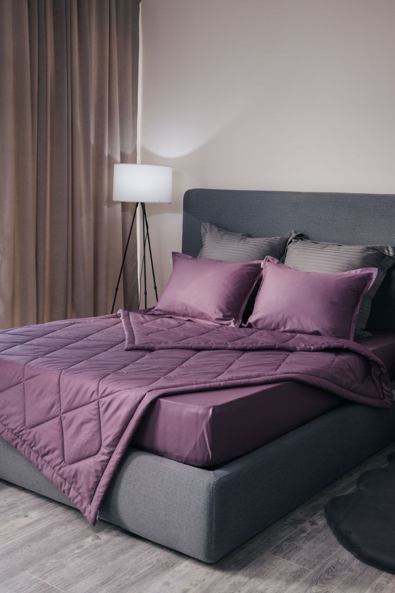 Постельное бельё DonCotton с готовым одеялом из страйп-сатина в черничном цвете - это когда комфорт и эстетика совпадают на 100