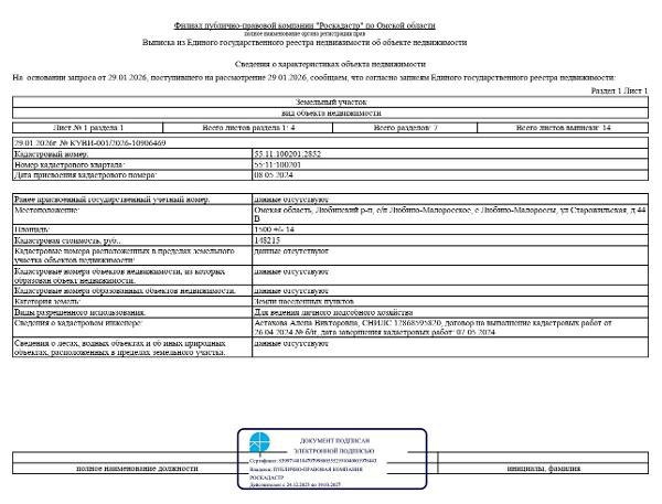 Название: Земельный участок из земель населенных пунктов, расположенный по адресу: Омская область, Любинский район, с