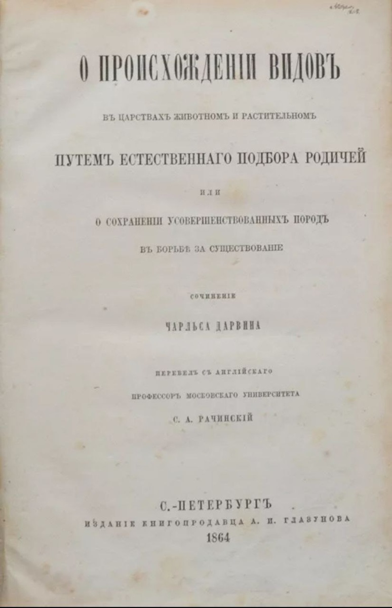 📚 ФАКТ ДНЯ: 30 ЯНВАРЯ 1868 ГОДА — ПЕРВОЕ РУССКОЕ ИЗДАНИЕ «ПРОИСХОЖДЕНИЯ ВИДОВ