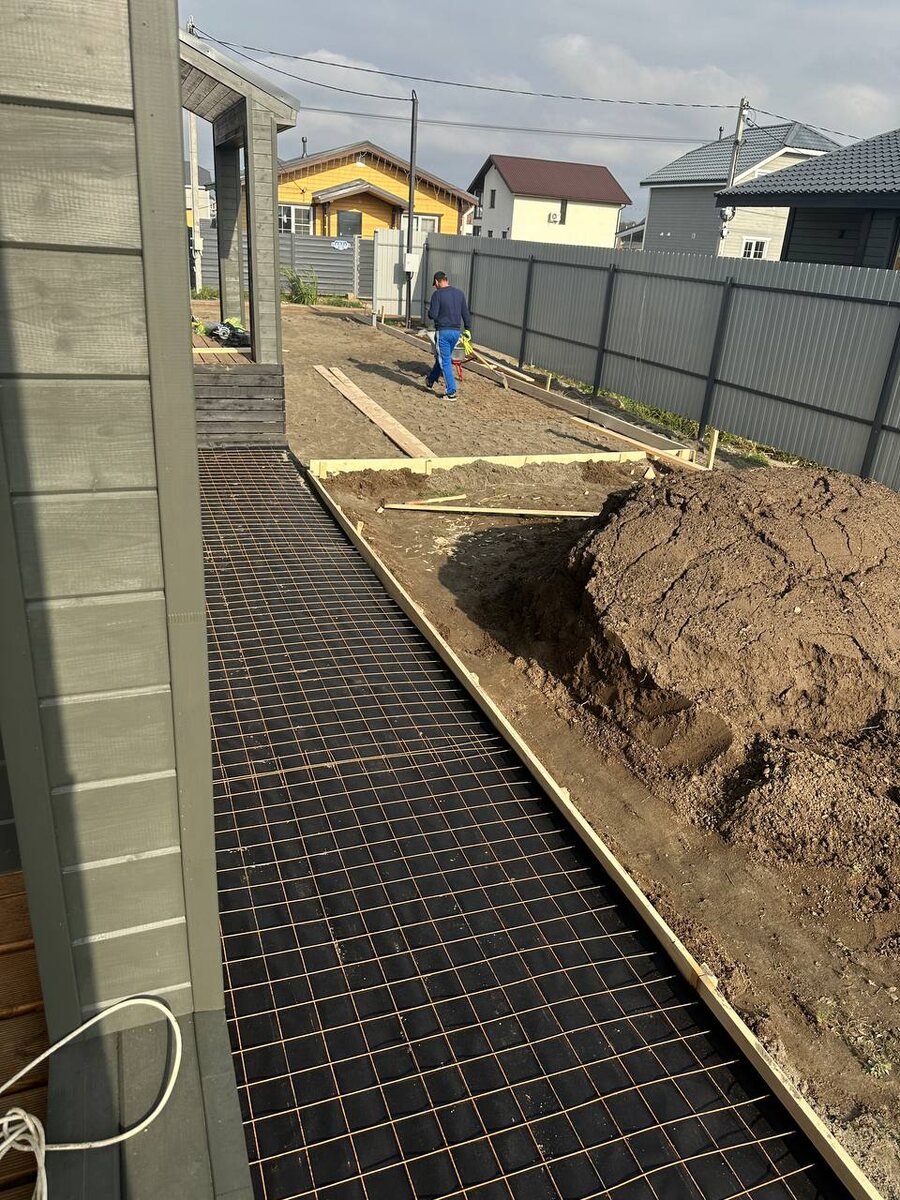 Отмостка — это водонепроницаемое покрытие по периметру дома, которое примыкает к цоколю здания. Она выполняет ряд важных функций и является необходимым элементом для защиты фундамента и продления срока службы дома. Парковочное место и отмостку решили делать сразу, сомнений, что она нужна, не возникало, но было много вопросов, как ее делать, к какой компании обратиться, где есть отзывы и уже завершенные работы. Процесс подбора специалистов, на мой взгляд, должен быть самым обдуманным, никогда нельзя звать первых, кого нашел в объявлении, нужно сравнить цены, отзывы, если есть возможность, то найти людей, кому уже оказывали подобную услугу, чтобы заказать ту фирму, которая делала им. А уж если нашли хорошую компанию, они подскажут, какие материалы и технологии лучше применить, как будет быстрее и надежнее, сколько должно пройти времени до полного высыхания, как нужно ухаживать за покрытием. Отмостка обязательна в жилых зданиях и желательна для любых построек с фундаментом — например, заб