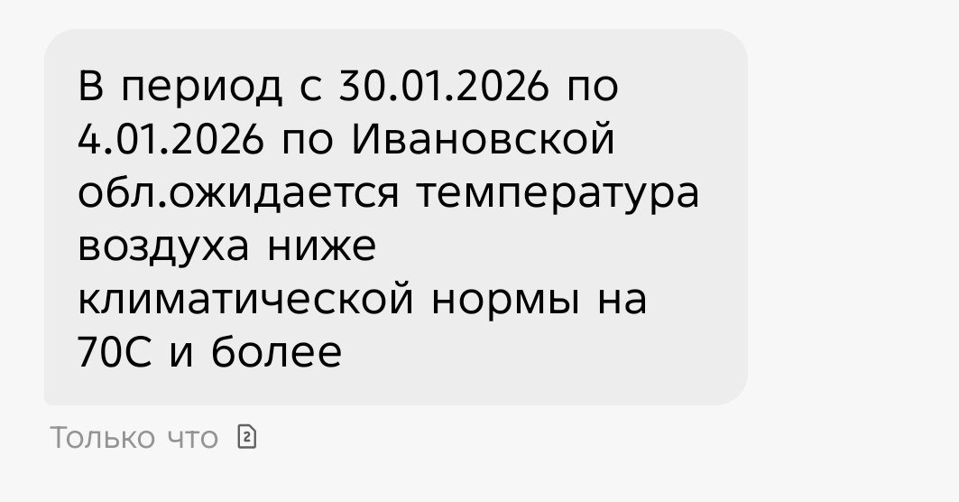 Некоторые запаниковали: неужели станет на 70 градусов холоднее??? Конечно, нет. Все дело в «съехавшем» значке градуса. Да и дата там неправильная 🙃 ⛄️А в ближайшие несколько дней в Ивановской области температура воздуха будет на семь градусов ниже климатической нормы. Максимум — до минус 25 ночью. Берегите себя.