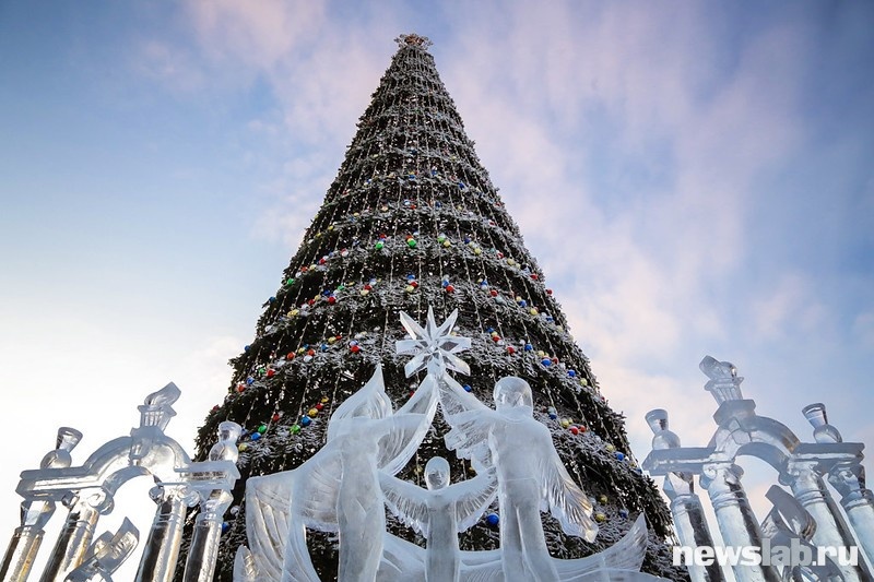 В Рождество, 7 января, в Красноярске на Центральной набережной стартовал конкурс «Волшебный лёд Сибири». Первыми попробовать свои силы в создании фигур из снега вышли семейные команды. Победителем конкурса строгое жюри выбрало команду «В одной связке» из Советского района. Семья Бунто создала «Царь рыбу».