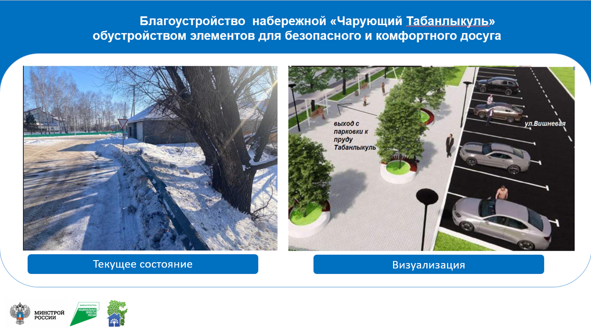В рамках федерального проекта «Формирование комфортной городской среды» национального проекта «Инфраструктура для жизни» в 2025 году в Буздякском районе Республики Башкортостан было проведено голосование по отбору общественной территории, подлежащей благоустройству. На основании итогов голосования граждан за выбор общественной территории, планируемой к благоустройству в 2026 году, наибольшее количество голосов было отдано за общественную территорию — «Благоустройство набережной «Чарующий Табанлыкуль» с обустройством набережной зоны, элементов для безопасного и комфортного досуга.
