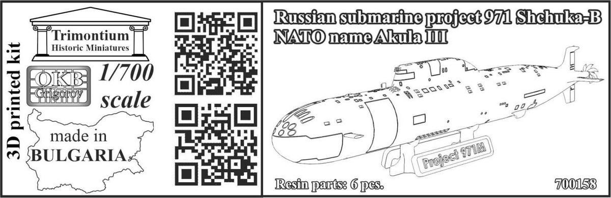 Болгарская OKB Grigorov выпустила на 3D-принтере модель подводной лодки проекта 971 "Щука-Б" в масштабе 1/700: