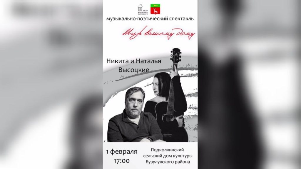Большой вечер памяти великого отца состоится 1 февраля на сцене Подколкинского сельского Дома культуры. Он приурочен к прошедшему дню рождения барда и актера – 25 января ему могло бы исполниться 88 лет. Никита Владимирович Высоцкий вместе с супругой Натальей представят музыкально-поэтический спектакль «Мир вашему дому». Зрители услышат песни и стихи Владимира Высоцкого. В том числе военную лирику знаменитого барда. Также со сцены Никита Высоцкий расскажет о своем отце, прозвучат личные воспоминания младшего сына знаменитого артиста. Напомним, что в годы войны трехлетний Володя Высоцкий был в эвакуации в Бузулукском районе. Вместе с мамой Ниной Максимовной он провел два года в деревне Воронцовка — с 1941 по 1943. Здесь бережно хранят память о великом барде и актере. Начало творческого вечера 1 февраля в 17 часов. Фото: администрация Бузулукского района 12+