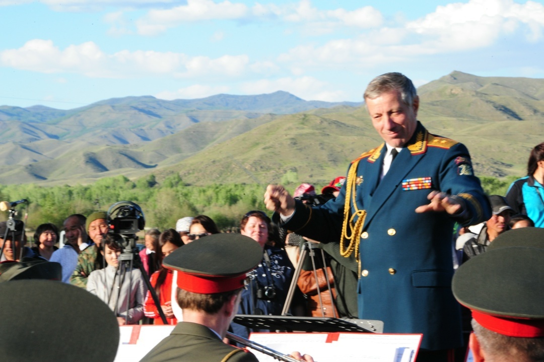 2014, 05 июня №60 (17519) Газета «Тувинская ПРАВДА» В минувший понедельник после приземления в Кызыле дорогие гости из Москвы, Центральный военный оркестр Министерства обороны РФ во главе с народным артистом России Валерием Халиловым, отправились в Каа-Хемский район. Мы видели столичных музыкантов на военном параде 9 мая в Москве, где мощным сводным коллективом дирижировал генерал-лейтенант, в марте уже побывавший в Кызыле, запомнившийся ярким выступлением в стенах филармонии. И на прямой трансляции с главного праздника победителей мы воспринимали Валерия Михайловича уже как своего хорошо знакомого человека, обладающего незаурядным талантом. Его команда готова к работе в любых условиях: хоть на Красной площади, хоть в степи. Что артисты и подтвердили. Также музыканты гастролируют по России и за рубежом, достойно представляя страну. В местечке Бурен-Хем на стадионе встретились два оркестра, а зрителями были многочисленные жители поселка и окрестных сел. Не будет преувеличением сказать: