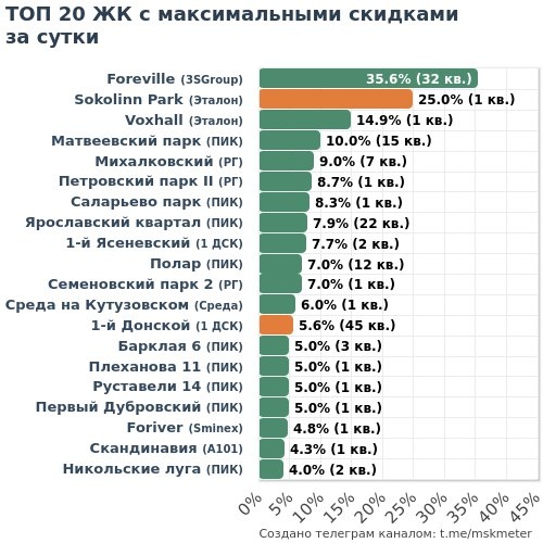 🟩 Честные скидки: 23 ЖК (120 кв.) 🟧 Маркетинг скидки: 13 ЖК (78 кв.) 💎 МАКСИМАЛЬНАЯ ЭКОНОМИЯ 🏆 3SGroup • Foreville ├🔻6.1M → 17.1M • 2-к 51м² ├🔻5.5M → 19.1M • 3-к 66м² └🔻5.1M → 19.1M • 3-к 66м² 🥈 Эталон • Voxhall └🔻5.8M → 38.6M • 3-к 82м² 🥉 РГ • Михалковский ├🔻3.9M → 43.6M • 4-к 89м² ├🔻3.8M → 42.7M • 4-к 89м² └🔻3.8M → 42.6M • 4-к 88м² 4️⃣ ПИК • Матвеевский парк ├🔻3.4M → 34.1M • 3-к 87м² └🔻3.3M → 33.0M • 3-к 86м² 5️⃣ Sminex • Foriver └🔻3.4M → 70.4M • 3-к 117м² 🔑 САМЫЕ ДОСТУПНЫЕ 🏆 ПИК • Ярославский квартал ├🔻339к → 8.9M • 1-к 38м² ├🔻535к → 9.7M • 1-к 34м² └🔻159к → 10.2M • 1-к 34м²❗️ 🥈 3SGroup • Foreville ├🔻2.0M → 9.9M • Студия 23м² ├🔻303к → 10.1M • Студия 24м² └🔻2.2M → 10.7M • Студия 26м² 🥉 ПИК • Никольские луга └🔻419к → 10.5M • Студия 23м² 4️⃣ ПИК • Ильинские луга ├🔻170к → 12.0M • 2-к 58м² └🔻182к → 12.7M • 2-к 56м² 5️⃣ 1 ДСК • 1-й Ясеневский └🔻277к → 12.6M • Студия 24м²❗️ ❗️— лоту меньше месяца 👇 Полная статистика: 📲 В Telegram | 🌐 На MskMet