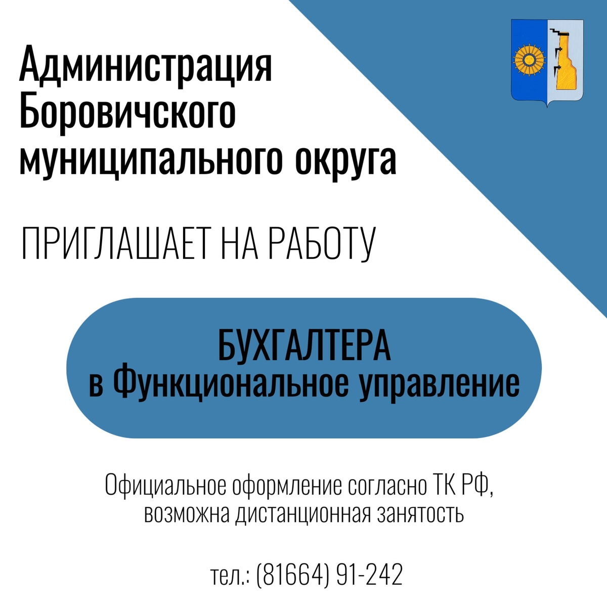 Администрация Боровичского муниципального округа приглашает на работу бухгалтера в функциональное управление