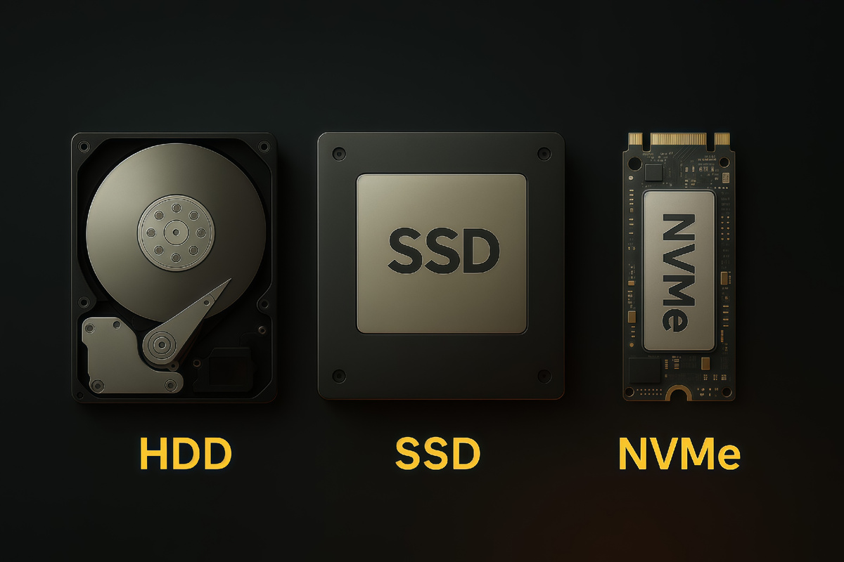 Если вы хоть раз задумывались о покупке нового компьютера или ускорении старого, то наверняка сталкивались с этими загадочными буквами: HDD, SSD, NVMe. Звучит сложно, но на самом деле все гораздо проще, чем кажется. Давайте разберемся без заумных слов и технической каши 👇 HDD это обычный жесткий диск с вращающимися пластинами внутри. Да, именно такие стояли почти во всех компьютерах раньше. Плюсы HDD: Минусы: Сегодня HDD чаще используют для хранения фильмов, фото и архивов, но не для системы. SSD это твердотельный накопитель без движущихся частей. Именно он делает компьютер быстрым и отзывчивым. Преимущества SSD: Недостатки: Переход с HDD на SSD обычно дает ощущение нового компьютера. NVMe это современный протокол передачи данных, который работает через шину PCIe. Что это дает: Минусы: Для игр, монтажа и работы с большими файлами NVMe отличный выбор. Коротко: PCIe намного быстрее, поэтому NVMe выигрывает по скорости. Если коротко: Лучший вариант сегодня - комбинация: SSD для системы и