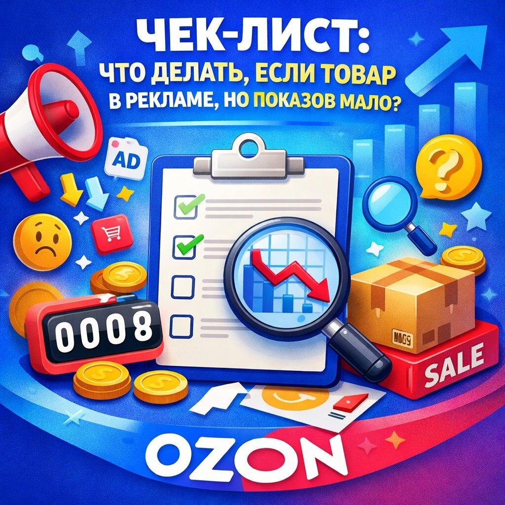 📊 Чек-лист: что делать, если товар в рекламе, но показов мало? OZON