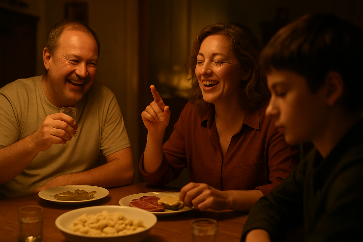 Рассказ Она начиналась с пакета. Брендованный, с алкомаркета, шуршащий, с бутылкой беленькой и двумя-тремя банками пива «про запас». Пакет появлялся в прихожей в пятницу, после семи вечера, когда папа возвращался с работы. Он ставил его на табуретку со звуком, в котором был целый манифест: всё, неделя кончилась. Можно. «Тяпница» — так папа, смеясь, называл этот день. «Надо тяпнуть, с неделей разобраться, завтра выходной». Мама сначала вздыхала: «Ой, ну вот опять…» Но в её вздохе уже была капитуляция. Она ставила на стол тарелки с нарезанной колбасой, сыром, солёными огурцами. Варила покупные пельмени. Обряд начинался. Тяпнуть — это не просто выпить. Это ритуал перехода. Из мира трезвых обязательств, ранних подъёмов и начальника-козла — в другой мир, тёплый, размытый, где все проблемы были не важны. Первая рюмка — за усталость. Вторая — за то, что живые. К третьей Вадик уже понимал: родители исчезают. Их лица размягчались, голоса становились громче. Они говорили о том, как всё достало.