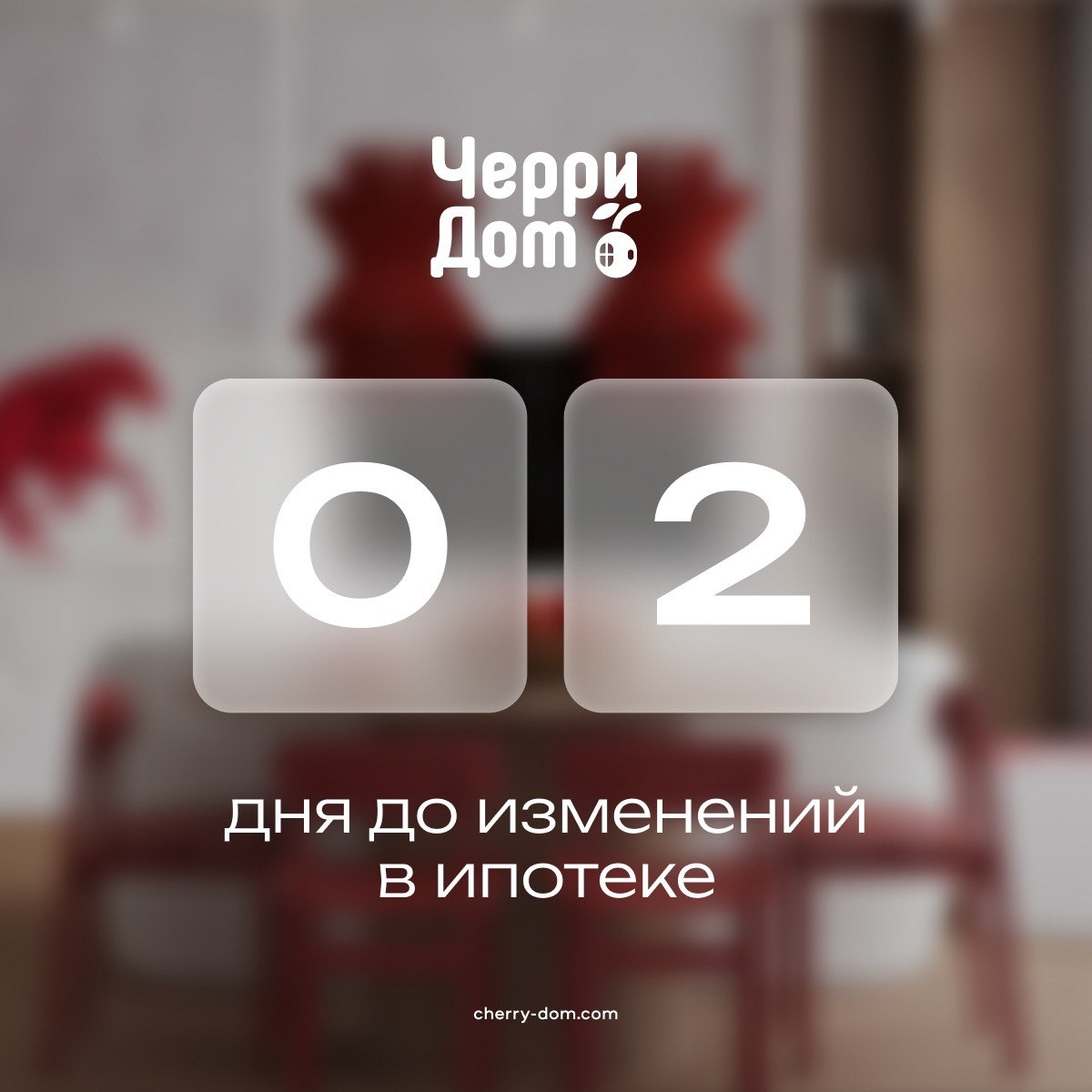 Осталось всего 2 дня, чтобы изменить свою жизнь кардинально с самой лучшей возможностью. Ведь с 1 февраля на семью можно будет взять только одну ипотеку. Поэтому сейчас — время для важного решения. Выбирайте свою квартиру на сайте ЧерриДом cherry-dom.com/flats с ежемесячным платежом от 27 596 руб. в месяц.