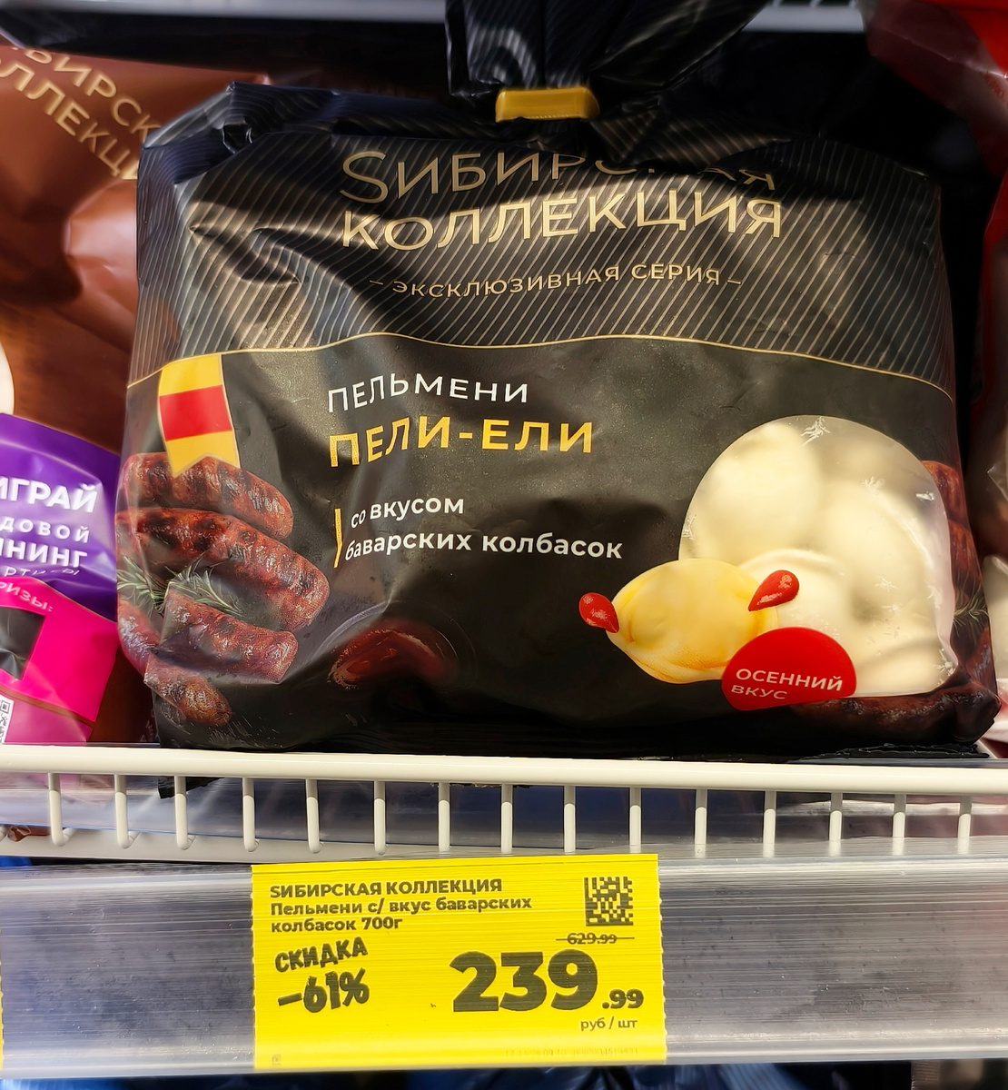 Пельмени Пели-ели со вкусом баварских колбасок. Что значит пели-ели? Мне нужно петь песни?
