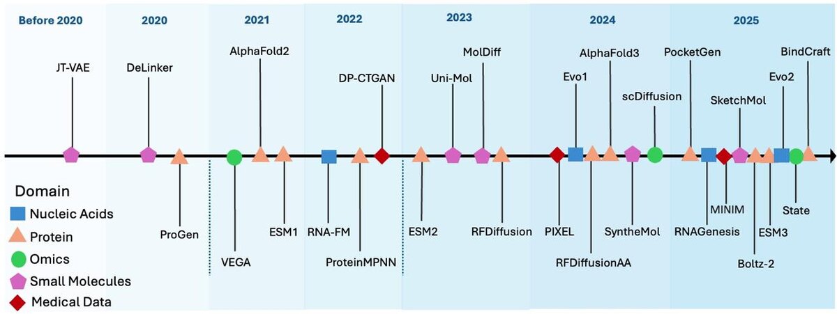 биологи нагнетают: количество генеративных моделей, способных работать с ДНК и другими биомолекулами растет экспоненциально (1 картинка