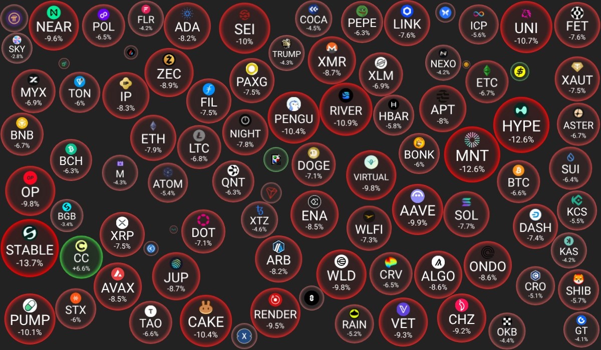 🗓 30.01.2026 09:30 по Москве. 🔗 Посмотреть на сайте 📈 Лидеры роста (из ТОП-100): 🟢 Canton Network (CC): $0.1737 (+6.3%) 🟢 DoubleZero (2Z): $0.1233 (+2%) 🟢 USDB (USDB): $1.0056 (+0.8%) 📉 Лидеры падения (из ТОП-100): 🔴 Stable (STABLE): $0.0252 (-13.7%) 🔴 Hyperliquid (HYPE): $28.73 (-12.5%) 🔴 Mantle (MNT): $0.7894 (-12.5%) 🔍 Основные метрики: 🔴 Общая капитализация: $2800.99 млрд (-6.14%) 🟢 Общий объем торгов: $180.08 млрд (+61.24%) 🔴 Доминация Bitcoin: 58.70% (-0.30%) 🔴 Доминация Ethereum: 11.71% (-0.22%) 🔴 Индекс страха и жадности: 16 / 100: ЭКСТРЕМАЛЬНЫЙ СТРАХ (-10) 🟢 Индекс Альтсезона: 33 / 100: НЕ АЛЬТКОИН-СЕЗОН (+2) 📖 Интересно почитать: 👉 Hyperliquidity Provider (HLP) - зарабатывай на ошибках трейдеров 😻 Наши сервисы и бонусы: 🫧 Coinbubbles.ru - наглядная визуализация рынка криптовалют в виде пузырей 📈 Bitget - Скидка на торговую комиссию 20% + бонус до 200$