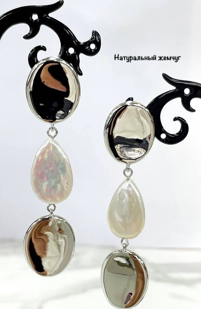 Серьги с натуральным барочным жемчугом в цвете металла kofe-gold