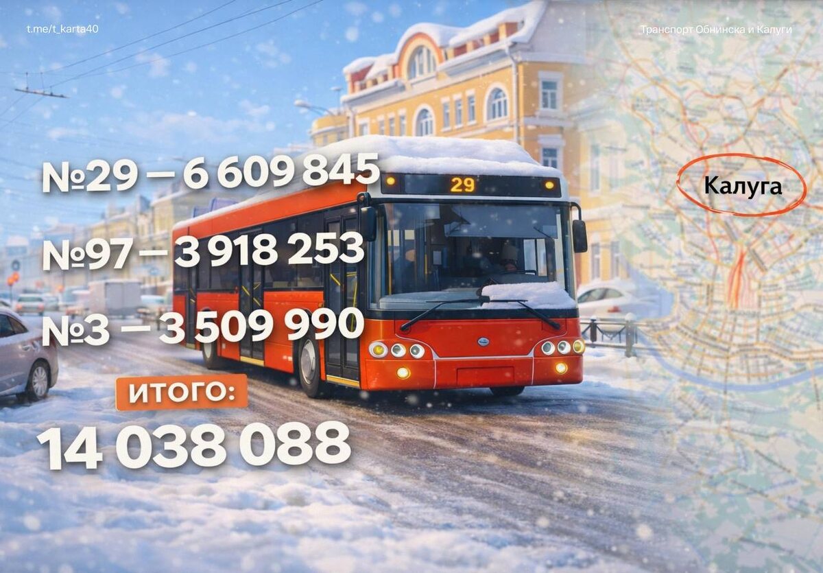 Тг-канал «Транспортная карта Калужской области» опубликовал статистику поездок калужан на общественном транспорте. Самыми востребованными маршрутами стали: 🚍 № 29 — более 6,6 млн поездок 🚍 № 97 — более 3,9 млн поездок 🚍 № 3 — более 3,5 млн поездок А каким маршрутом чаще всего пользуетесь вы? 📺 Подписывайтесь на наш канал в Максе