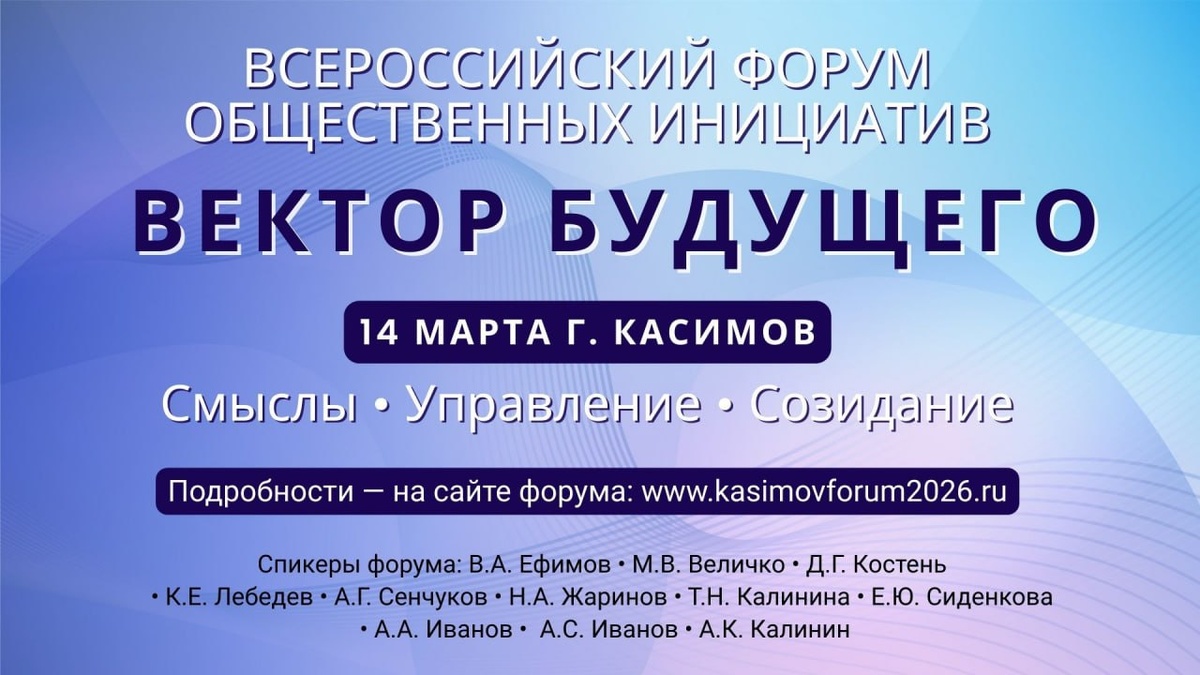 14 марта состоится Всероссийский форум «Вектор будущего» — пространство осмысленного диалога о будущем России: о смыслах, управлении, экономике, культуре и человеке как ключевом субъекте происходящих процессов. Форум создаётся как практическая площадка, где не просто говорят о будущем, а собирают работающие модели созидательного развития — от мировоззрения до конкретных решений. 🔹 Форум откроет Виктор Алексеевич Ефимов с программным докладом: «Какова роль России в процессе глобализации мира» Это разговор о суверенитете не только политическом и экономическом, но прежде всего — мировоззренческом и управленческом. Среди экспертов форума: ▶️Михаил Викторович Величко — «Экономика как объект управления» ▶️ Дмитрий Геннадьевич Костень — соавтор концепции Экосистемы Созидания ▶️Калинина Тамара Николаевна «Жить в провинции: выбор или вызов?» ▶️ Кирилл Евгеньевич Лебедев — «Образование как основа будущего» ▶️ Андрей Геннадьевич Сенчуков — «Освобождение от зависимости — как первый шаг к