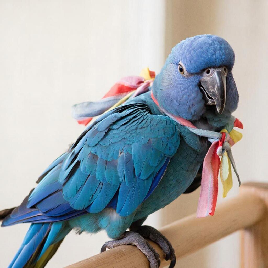 1. Сначала просто познакомьте птицу с шлейкой как с новой игрушкой. Пусть она полежит рядом, птица сама подойдет ее изучить.